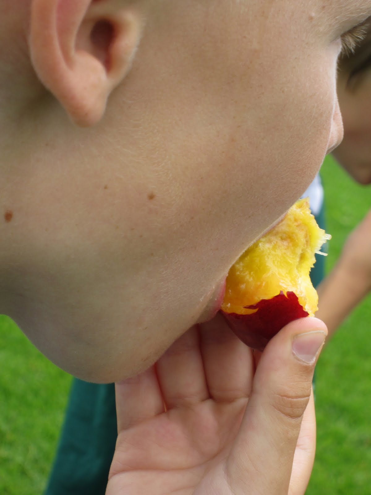 Sønnike spillede endnu en fodboldkamp igår. Udover at få en masse sund motion, så er der i på holdet indført, at én af spillerne medbringer frugt, som bliver spist i halvlegen. Frugten har det formål, at give drengene noget hurtigt energi i form af frugtsukker til de kommende 30 minutters kamp. Og alle drengene spiser et stykke frugt!